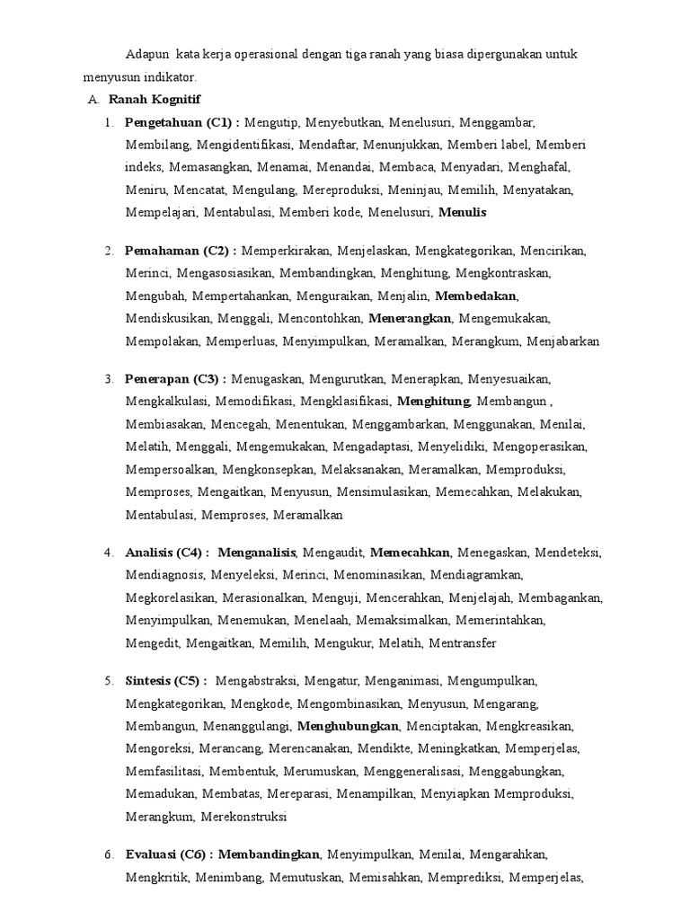 Kata Kerja Operasional Baru Taksonomi Bloom Belajar