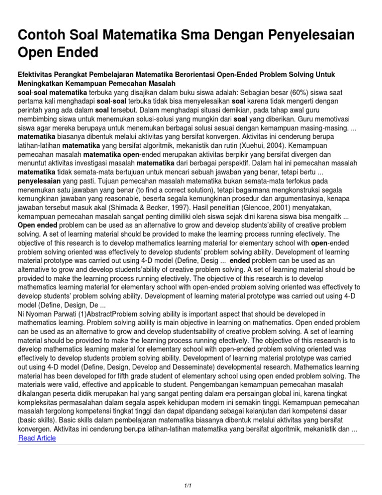 Contoh Soal Matematika Sma Dengan Penyelesaian Open Ended