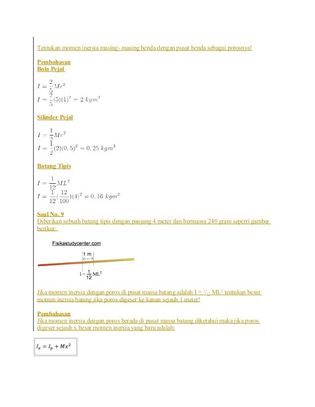 Soal Momen Inersia Un. Soal UN Fisika tentang moemn gaya dan momen inersia ini dihimpun dari soal-soal tahun sebelumnya. Momen inersia adalah kecenderungan suatu benda untuk mempertahankan keadaan putarnya baik tetap diam atau tetap bergerak memutar.